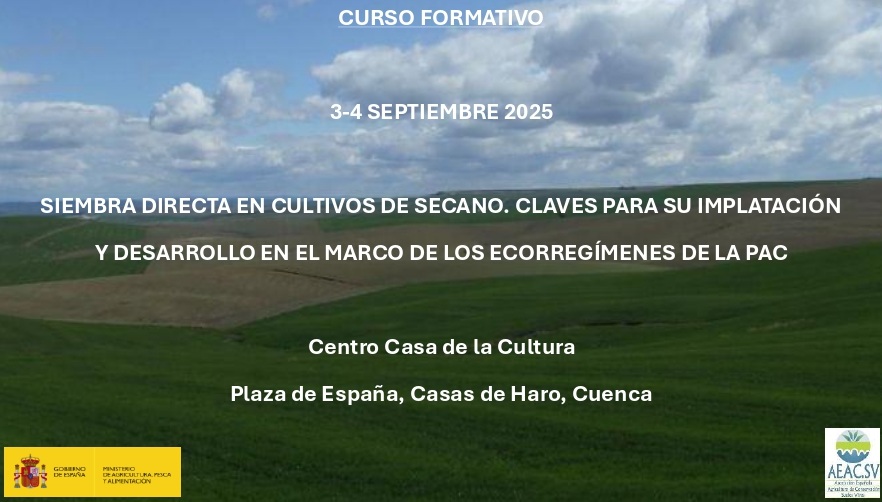 Aforo limitado a 30 personas. Más información e inscripción gratuita: https://portalformativoac.es/curso-formativo-siembra-directa-en-cultivos-de-secano-claves-para-su-implantacion-y-desarrollo-en-el-marco-de-los-ecorregimenes-de-la-pac-cuenca/