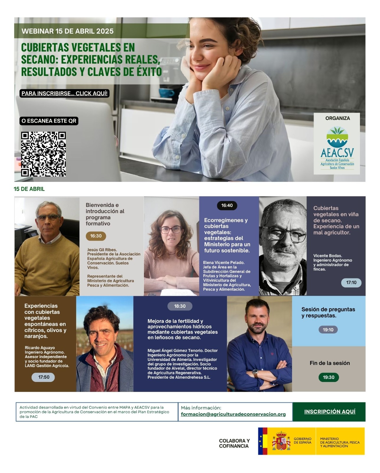 Más información e inscripción: https://portalformativoac.es/webinar-15-abril-2026-cubiertas-vegetales-en-secano-experiencias-reales-resultados-y-claves-de-exito/