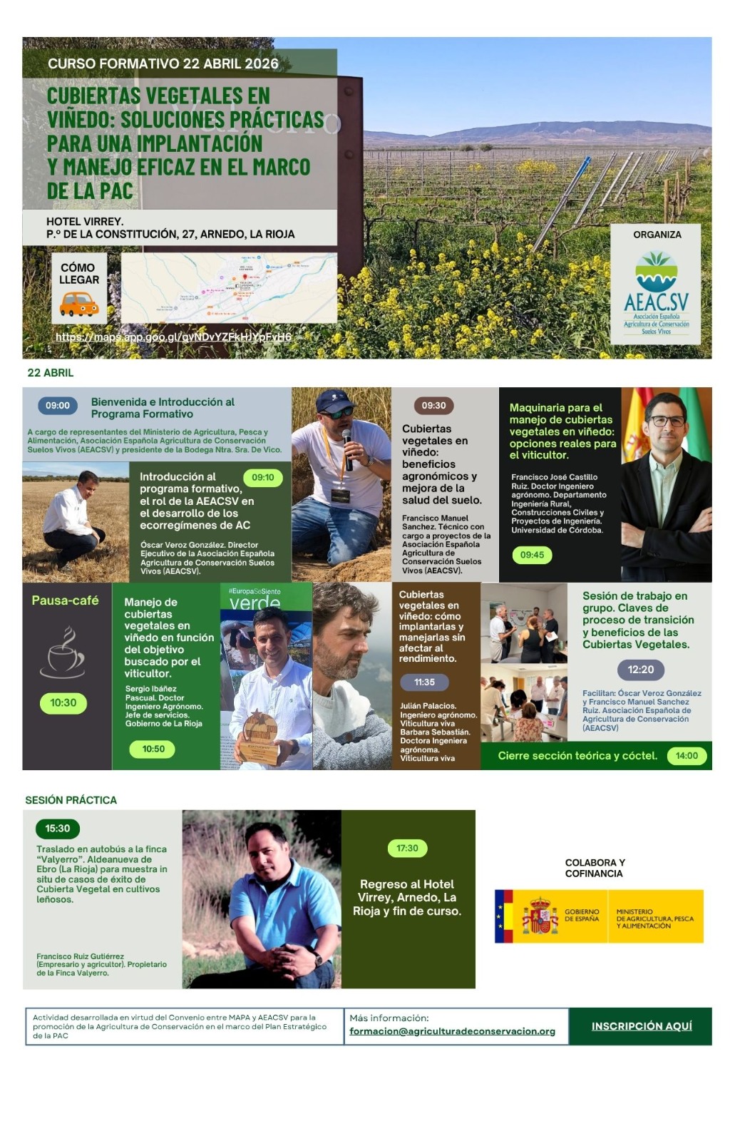 Por motivos de aforo, el curso “Cubiertas vegetales en viñedo: Soluciones prácticas para una implantación y manejo eficaz en el marco de la PAC”, previsto para el próximo 22 de abril en Arnedo (La Rioja), cambia su sede.
